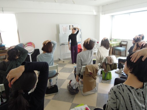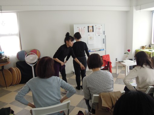 後半はいよいよからだを動かします。セルフマッサージや呼吸法を学びました。