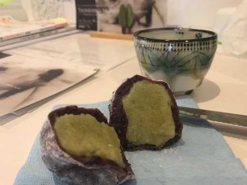 黒米の皮にずんだあんのお大福。集中するとお腹がすきます。