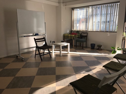 でも、寒い季節のプロトマニアの雰囲気は、ちょっと異国みたいで好きです。この床は、マーモリウムというナチュラルな素材です。昔、イタリアの田舎で見た光景を思い出して斜めの市松模様。この空間でヌクヌクしながら、ちょっとした非日常を楽しみ、冬支度をする講座を12月に開催します。