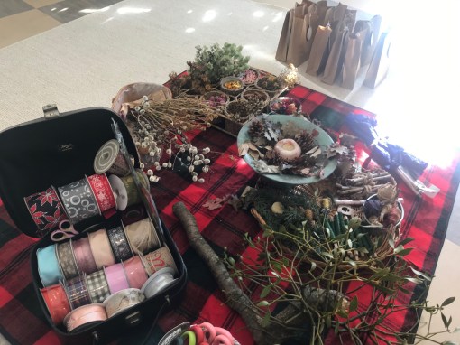kiico さんが選んで揃えてくださる植物、オーナメントやリボンは並べてあるだけで絵になる可愛らしさ。大人のボーイズ&ガールズが、間違いなくワクワクするセンス。今年は、異常気象で、リースのベースになる樹木たちが品薄だったとか。ニュースで見ていた自然災害の影響を、こんなところで実感。