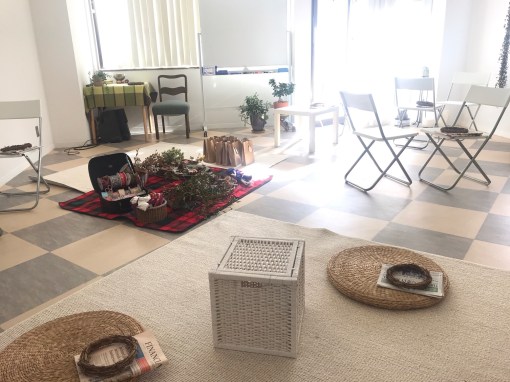 kiico さんのフォレストリース作りは、お手本があるわけではありません。みんなが同じ素材から好きなように楽しく作ることを大切にし、作る時間は自分だけのため、自分への贈りものの時間であるようにと、kiico さんのさりげない心くばりが全員を包みます。魔法みたいに!