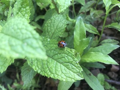 お気に入りは、ローズマリーやミントがたくさん植えてあるゾーン。てんとう虫にも出会います。