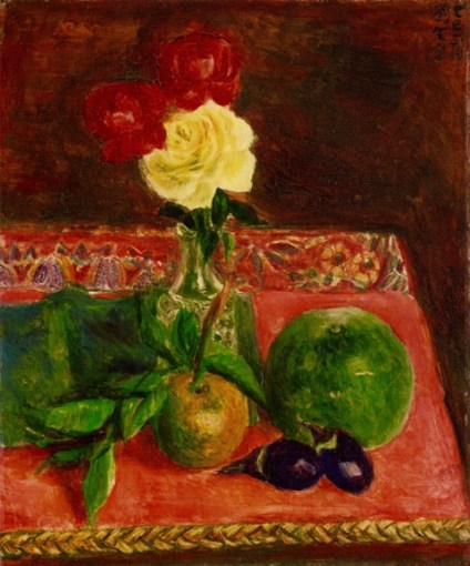 また、劉生が率いた美術団体《草土社》の名の通り、土系の絵具のイメージの強い劉生が、最晩年の1929年に描いた赤と緑の対比も鮮やかな油彩画が3点見られるのも貴重です。劉生はこの年の12月に38歳の若さで亡くなってしまうのですが、もし彼がもっと長く生きていたら、カラリスト劉生という展開もあったのかなと思わせる美しい絵です。