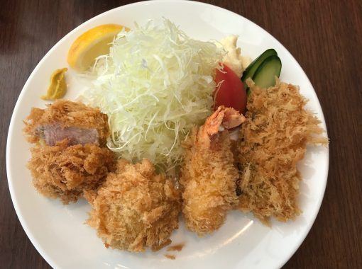 ミックスフライ。おいしかった。記念写真。