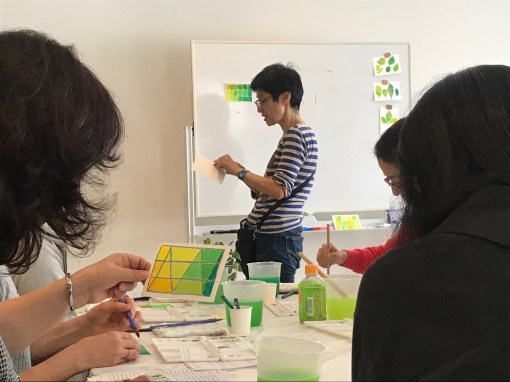 緑色をベースにして、赤青黄色そして茶色でする「ミドリ体操」*ミドリ体操の謎は次回のワークショップで体験してくださいね!
