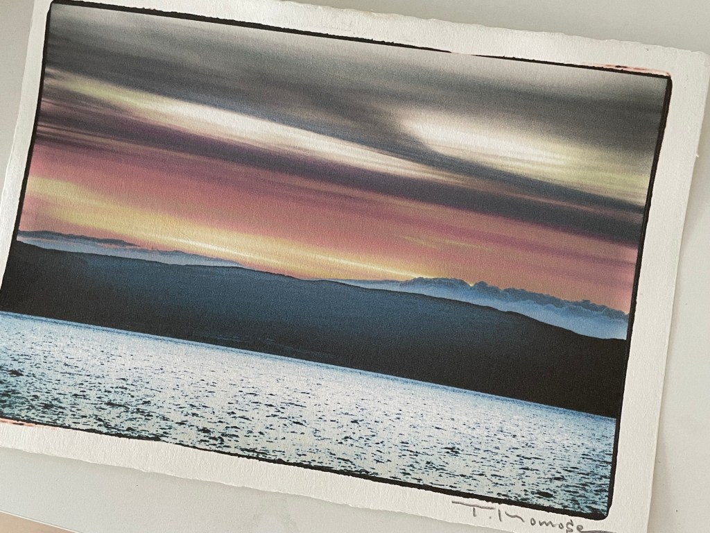 *和紙にプリントして描いた写画は、こんな感じ。今回の個展は、モノクロの写真に彩色してるので、もっと百瀬さんの絵心が見えると思います。