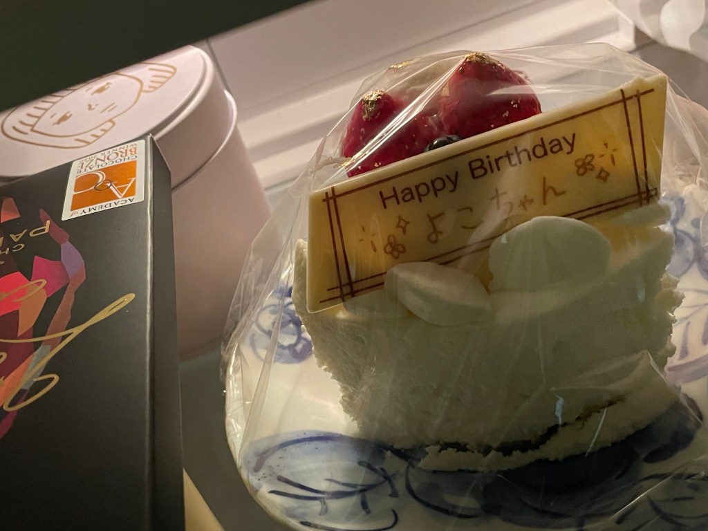 *冷蔵庫のランプに照らされたバースデーケーキもドラマ。