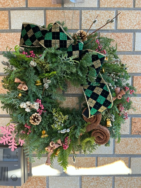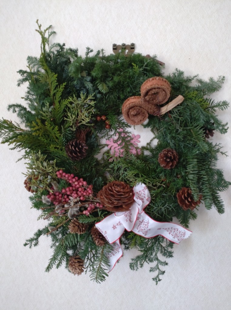 *そしてこれは、私のリース。相変わらずのボサボサっぷりですが、自己満足で楽しく。