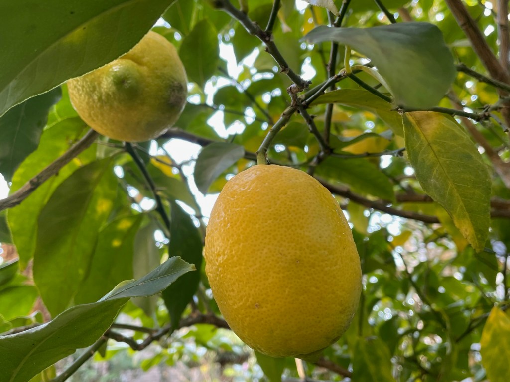 庭のレモンの木は、30年くらい前に鉢で買って、数年前に地植えにしてからぐんぐん背を伸ばして2階に届くほどの大きな木になりました。長い間、鉢という環境で育って小さな実をつけてくれたけど、広い地面に降りてからは自由に大きく伸びて、その上、大きなレモンの実を今年はたくさんつけました。