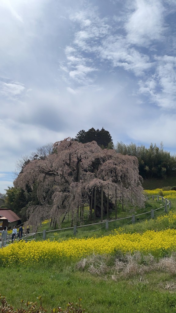 行く道すがら、畑の横に咲く菜の花や遠く山々の姿を見たり、