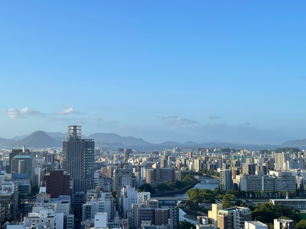 広島の街は山々に囲まれているのか・・・と思いきや、正面に見えるのは、瀬戸内海に浮かぶ宮島をはじめとする島々でした。街の中心から海がこんなに近いのですね。