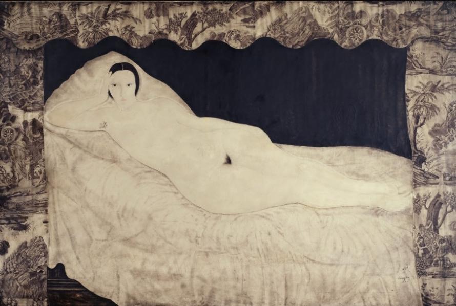 藤田の《ジュイ布のある裸婦(寝室の裸婦キキ)》