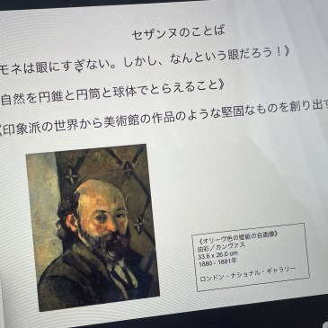 立秋を過ぎたら、こんなに暑くても秋の気配を感じるのは、自然の不思議〜 明日は山の日、祭日ですね。連休が始まる方もいらっしゃることでしょう。プロトマニアはオンラインで中尾先生の対話型アート鑑賞講座、お題は、セザンヌ。 ご一 … 続きを読む : 山の日はセザンヌ